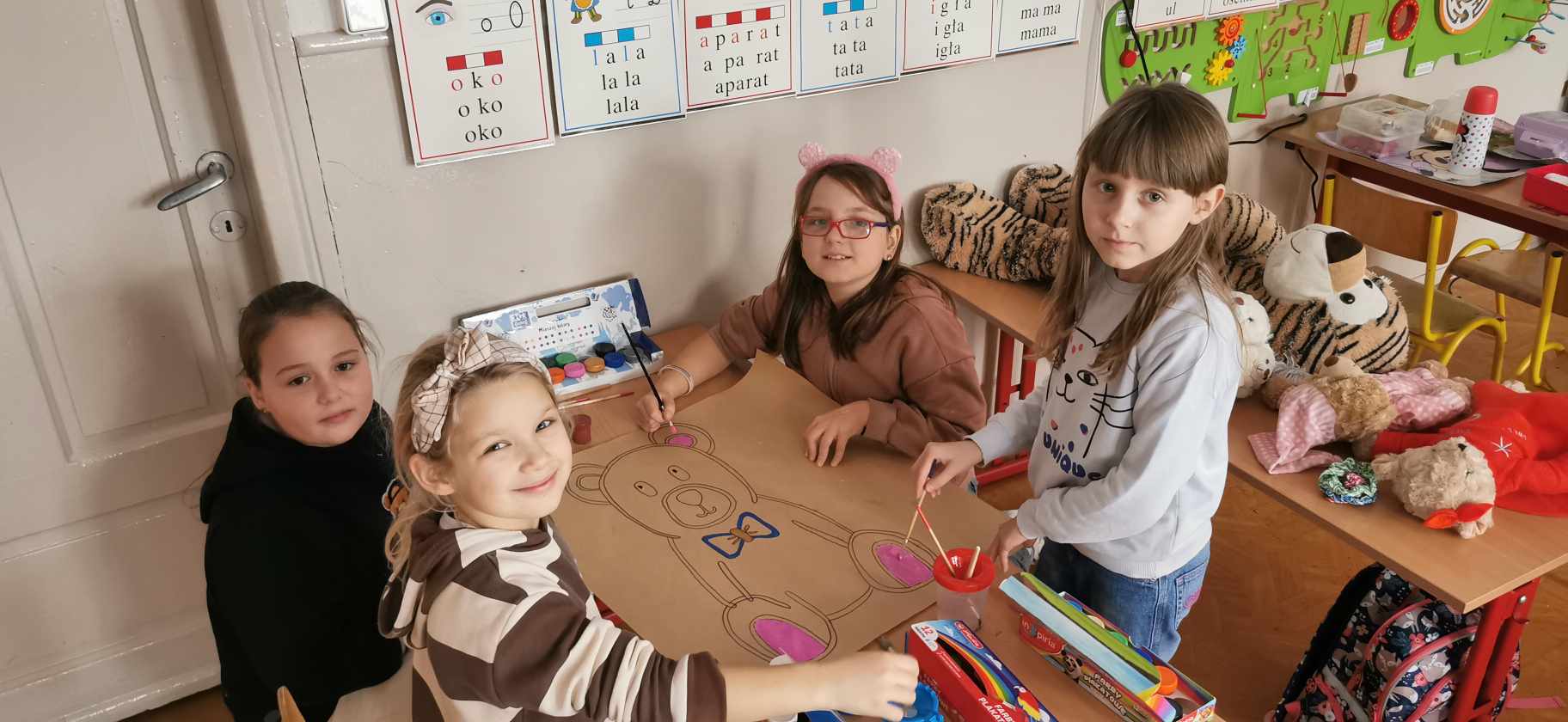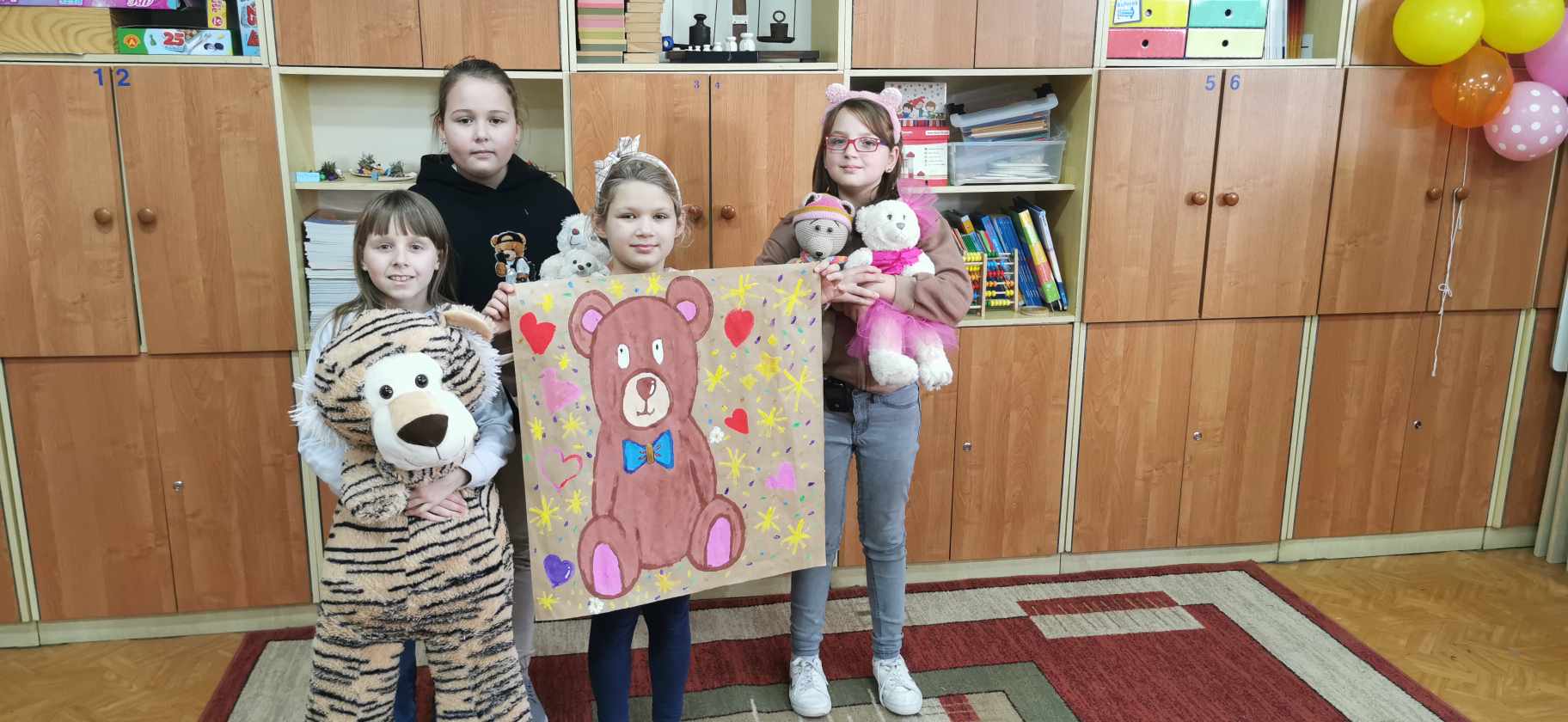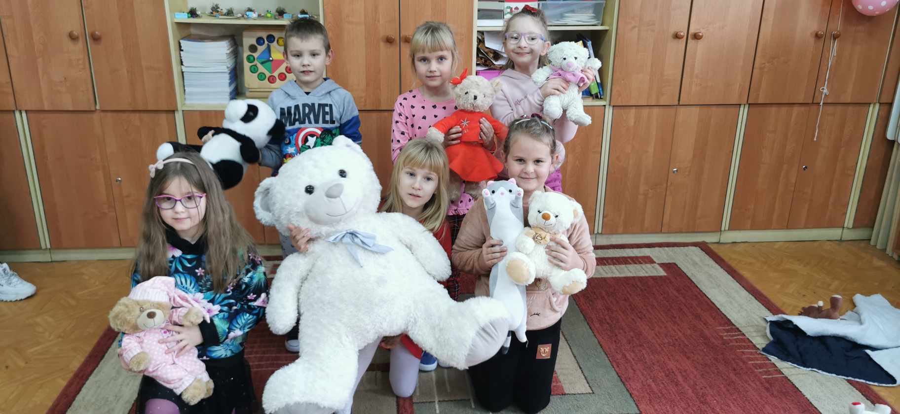 W piątek 24 listopada świętowaliśmy urodziny naszego najstarszego i najmilszego przyjaciela – pluszowego misia. Obchodził on swoje 121 urodziny. Z tej okazji uczniowie mogli przynieść do szkoły swojego ulubionego pluszowego przyjaciela, który umilił im czas spędzony w szkole. Klasa I, III oraz oddział przedszkolny zebrali się w jednej sali, aby wspólnie uczcić Światowy Dzień Pluszowego Misia. Dzieci poznały historię powstania pluszowego misia, wysłuchały ciekawostek na temat najbardziej znany misiów, takich jak Miś Uszatek, Kubuś Puchatek, Colarlgol, Paddington, Miś Yogi, Baloo, Troskliwe Misie czy Gumisie. Uczniowie prezentowali przyniesione przez siebie misie, opowiadali związane z nimi ciekawe historie. Następnie wzięli udział w „Misiowym Teleturnieju”, gdzie sprawdzili swoją wiedzę. Na zakończenie uczniowie zostali podzieleni na grupy i pomalowali duże misie. Według naszych uczniów najlepszy i niezastąpiony przyjaciel dzieci miał niezapomniane urodziny.
