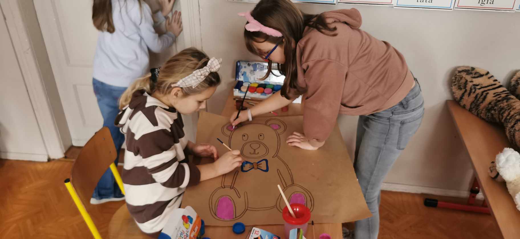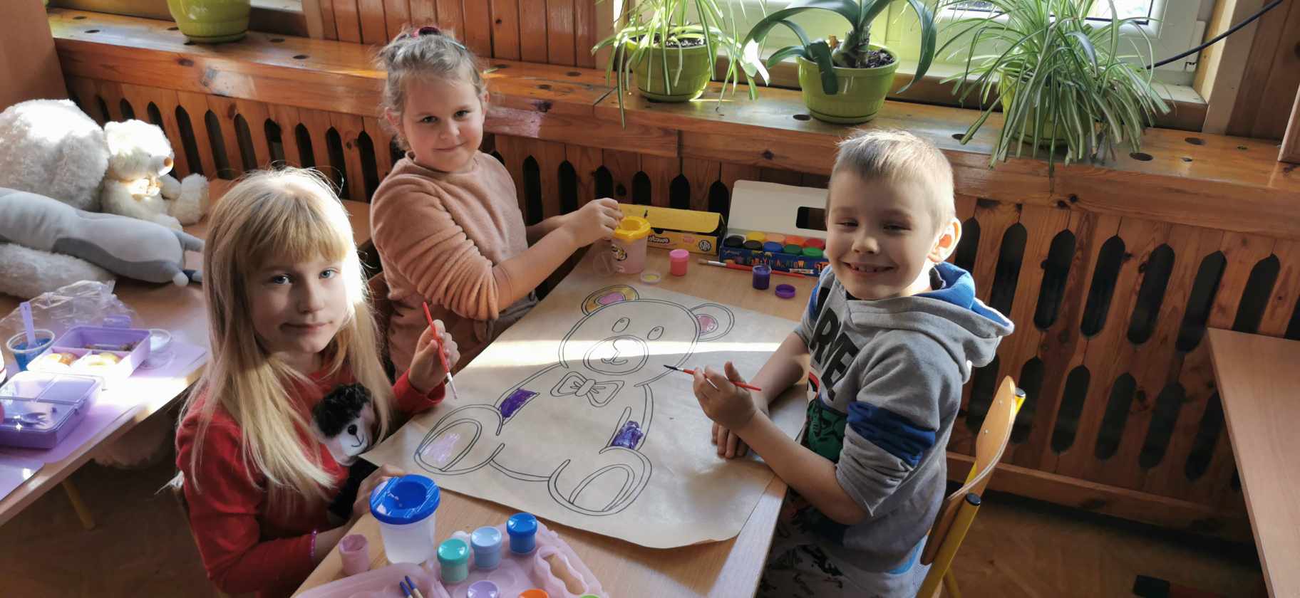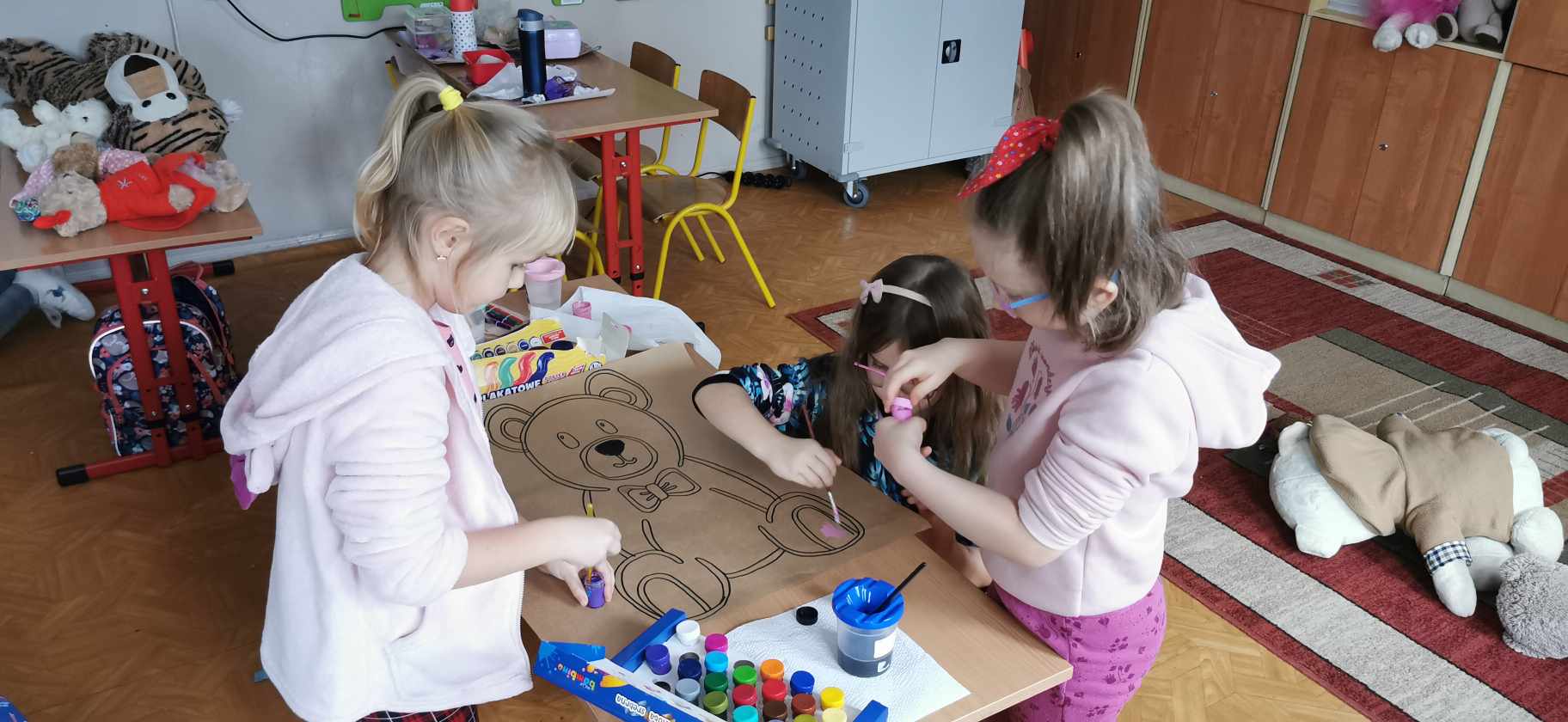 W piątek 24 listopada świętowaliśmy urodziny naszego najstarszego i najmilszego przyjaciela – pluszowego misia. Obchodził on swoje 121 urodziny. Z tej okazji uczniowie mogli przynieść do szkoły swojego ulubionego pluszowego przyjaciela, który umilił im czas spędzony w szkole. Klasa I, III oraz oddział przedszkolny zebrali się w jednej sali, aby wspólnie uczcić Światowy Dzień Pluszowego Misia. Dzieci poznały historię powstania pluszowego misia, wysłuchały ciekawostek na temat najbardziej znany misiów, takich jak Miś Uszatek, Kubuś Puchatek, Colarlgol, Paddington, Miś Yogi, Baloo, Troskliwe Misie czy Gumisie. Uczniowie prezentowali przyniesione przez siebie misie, opowiadali związane z nimi ciekawe historie. Następnie wzięli udział w „Misiowym Teleturnieju”, gdzie sprawdzili swoją wiedzę. Na zakończenie uczniowie zostali podzieleni na grupy i pomalowali duże misie. Według naszych uczniów najlepszy i niezastąpiony przyjaciel dzieci miał niezapomniane urodziny.