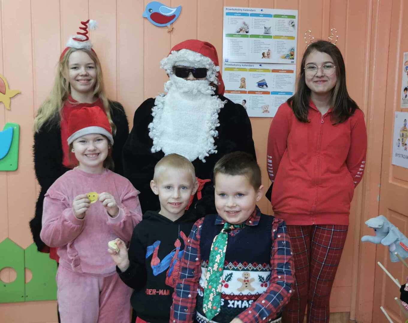 Szósty grudnia to dzień, o którym nikomu nie trzeba przypominać. Mikołajki to dzień w kalendarzu ważny dla naszych uczniów. Tego dnia w naszej szkole królowała czerwień. Dzieci ubrane były na czerwono, a na ich głowach widniały piękne mikołajkowe czapki. Każda klasa świętowała Mikołajki w indywidualny, wyjątkowy sposób między innymi poprzez oglądanie świątecznych filmów, ubieranie choinki, dekorowanie sali, pieczenie pierniczków czy obdarowywanie się prezentami. Na szkolnym korytarzu pojawiła się wielka, pięknie ubrana choinka, dzięki niej w naszej szkole czuć już magie zbliżających się świąt.