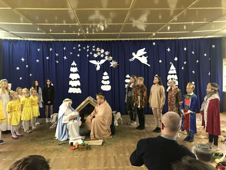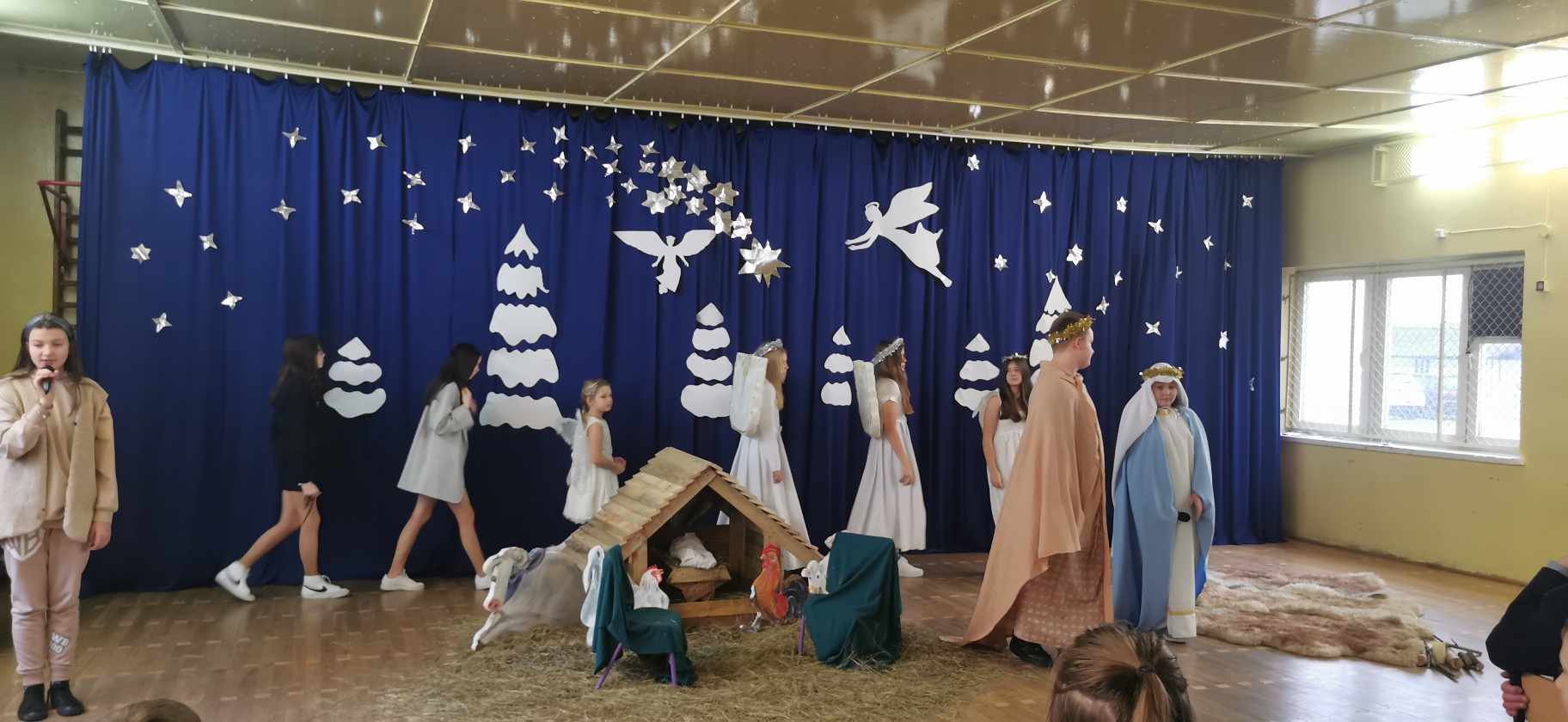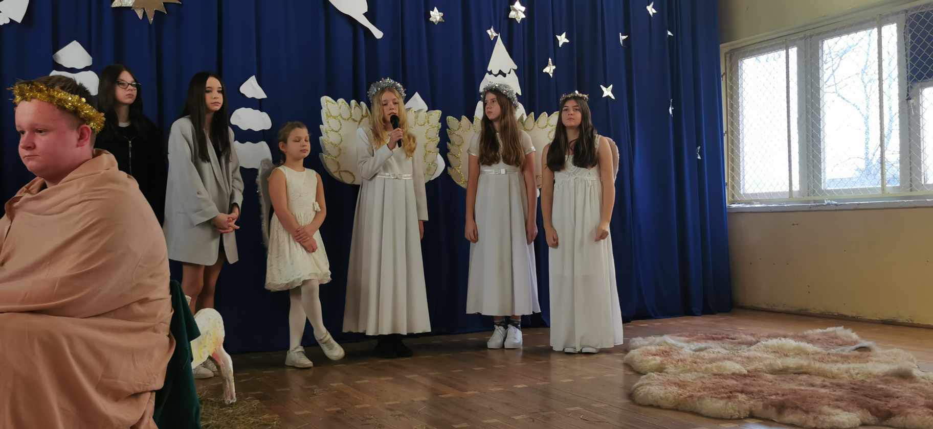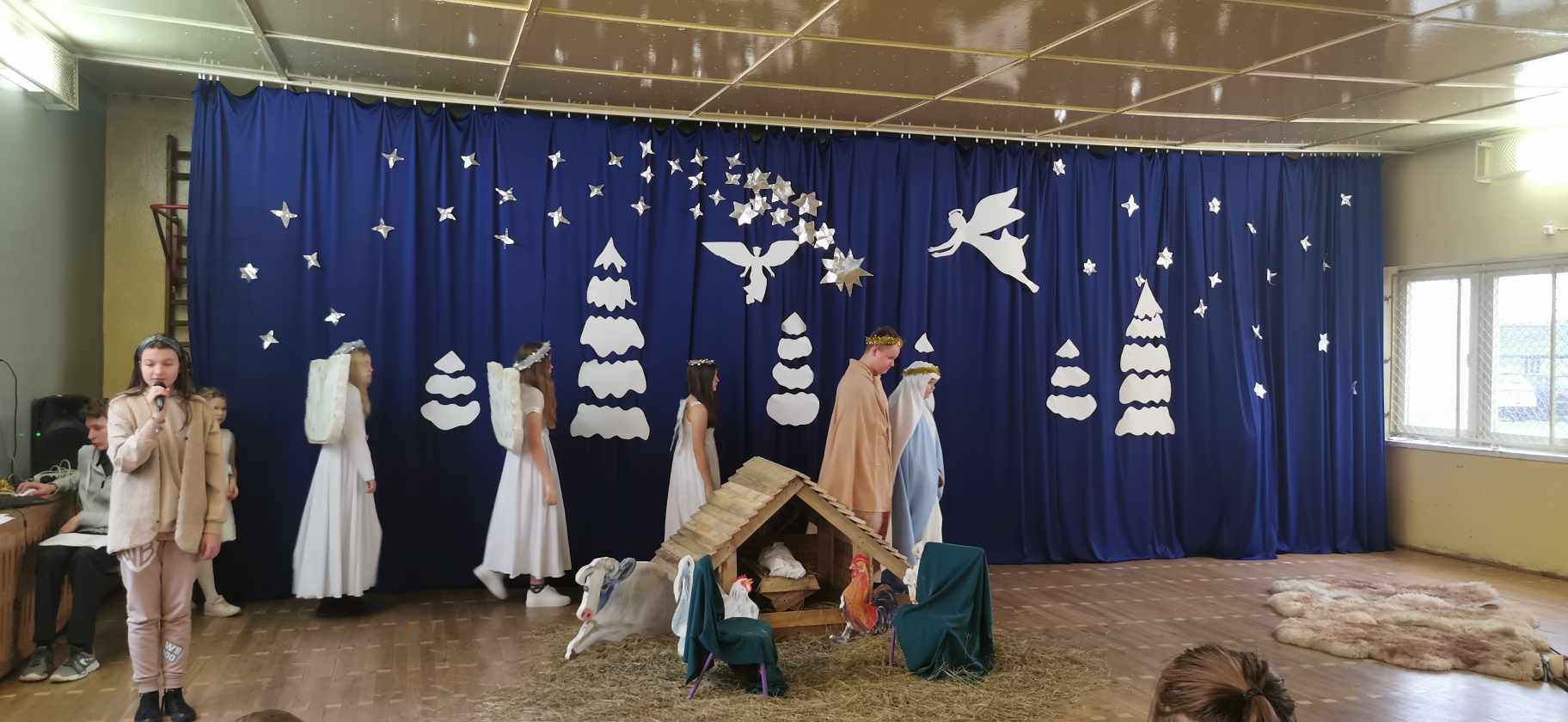 Uczniowie ze wszystkich klas pod okiem pani Agnieszki Krawczyk zaangażowali się w przygotowanie wzruszającego jasełkowego przedstawienia. Sceneria, kostiumy oraz zaangażowanie uczestników sprawiły, że wszyscy obecni mogli poczuć wyjątkową atmosferę świąt.