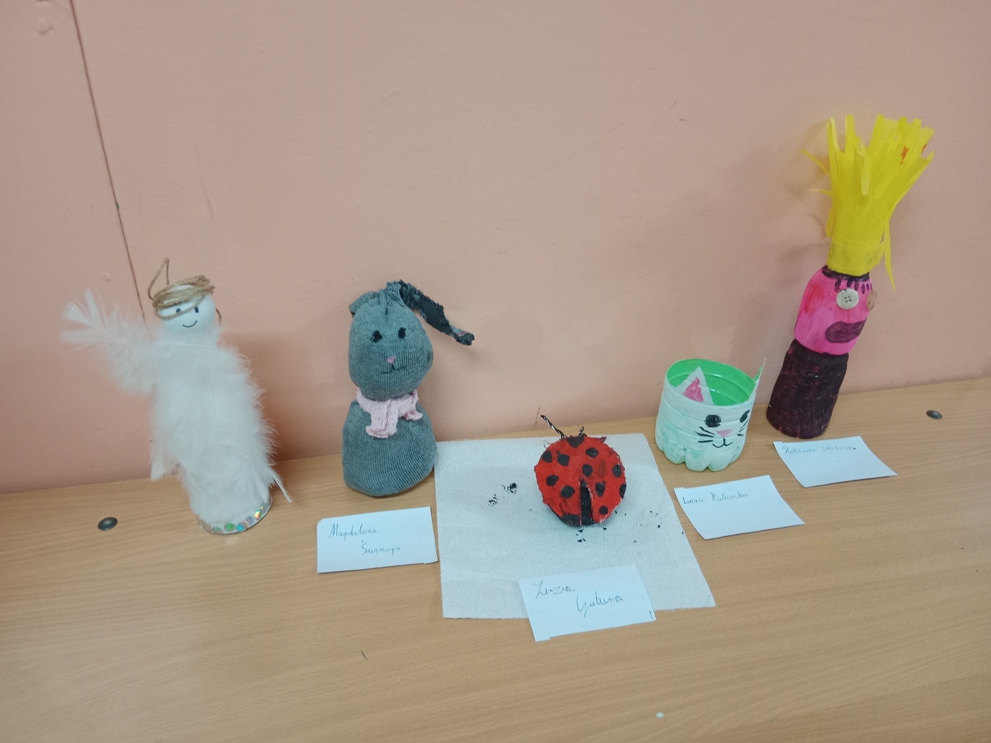 w ramach projektu EKOszkoła nasi uczniowie przygotowali dekoracje i zabawki z róznych materiałów