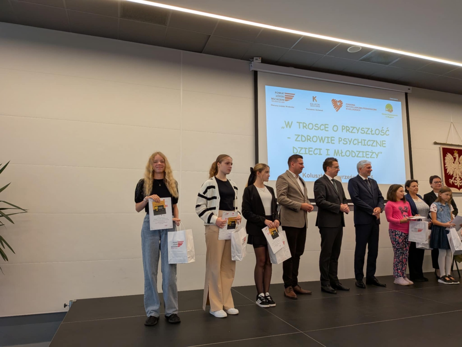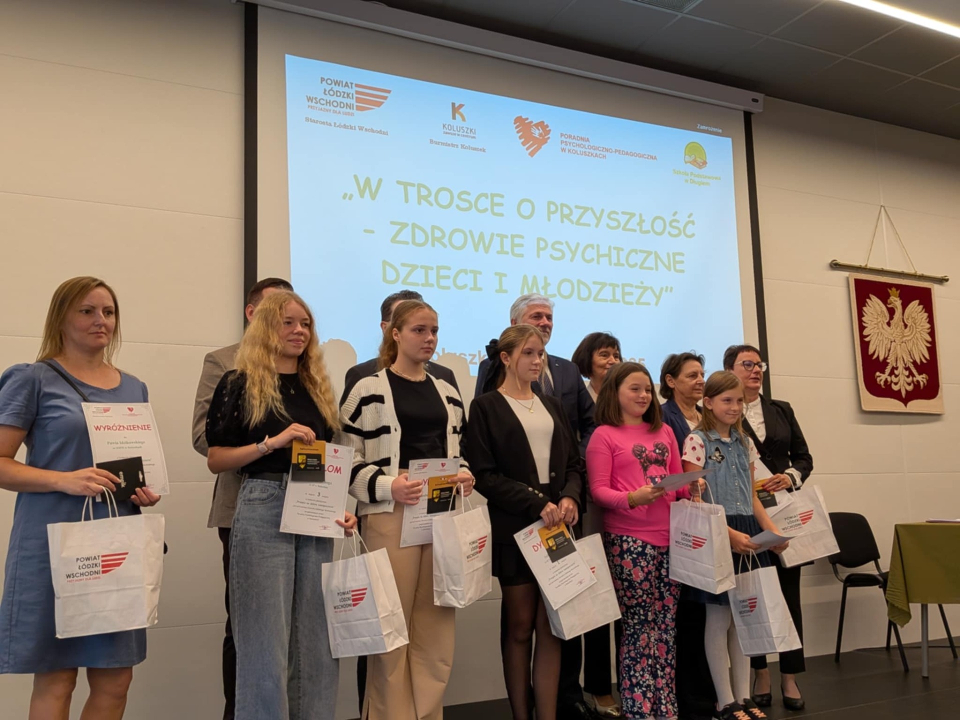 Uczennica klasy 8 - Monika Świnoga podczas odbioru nagrody na konferencji psychologicznej 22 wwrześnia